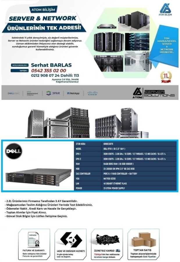 2.EL DELL R710 XEON X5675 2X CPU 64 GB DDR3 2X 300GB 10K 2,5 PERC 6/i RAID + BATTERY 2X 870W POWER