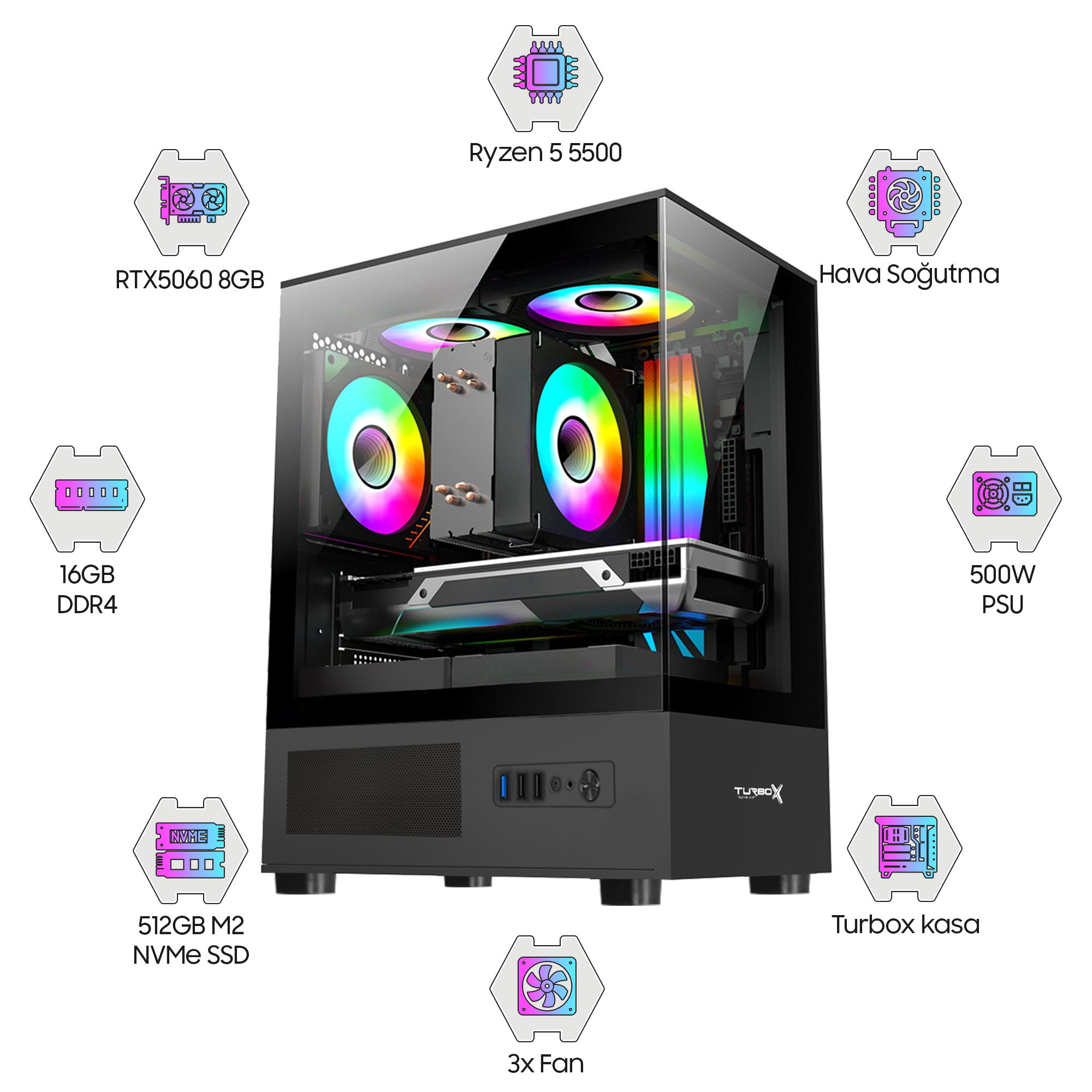 | Güç Kaynağı | Turbox 500W ATX PSU |