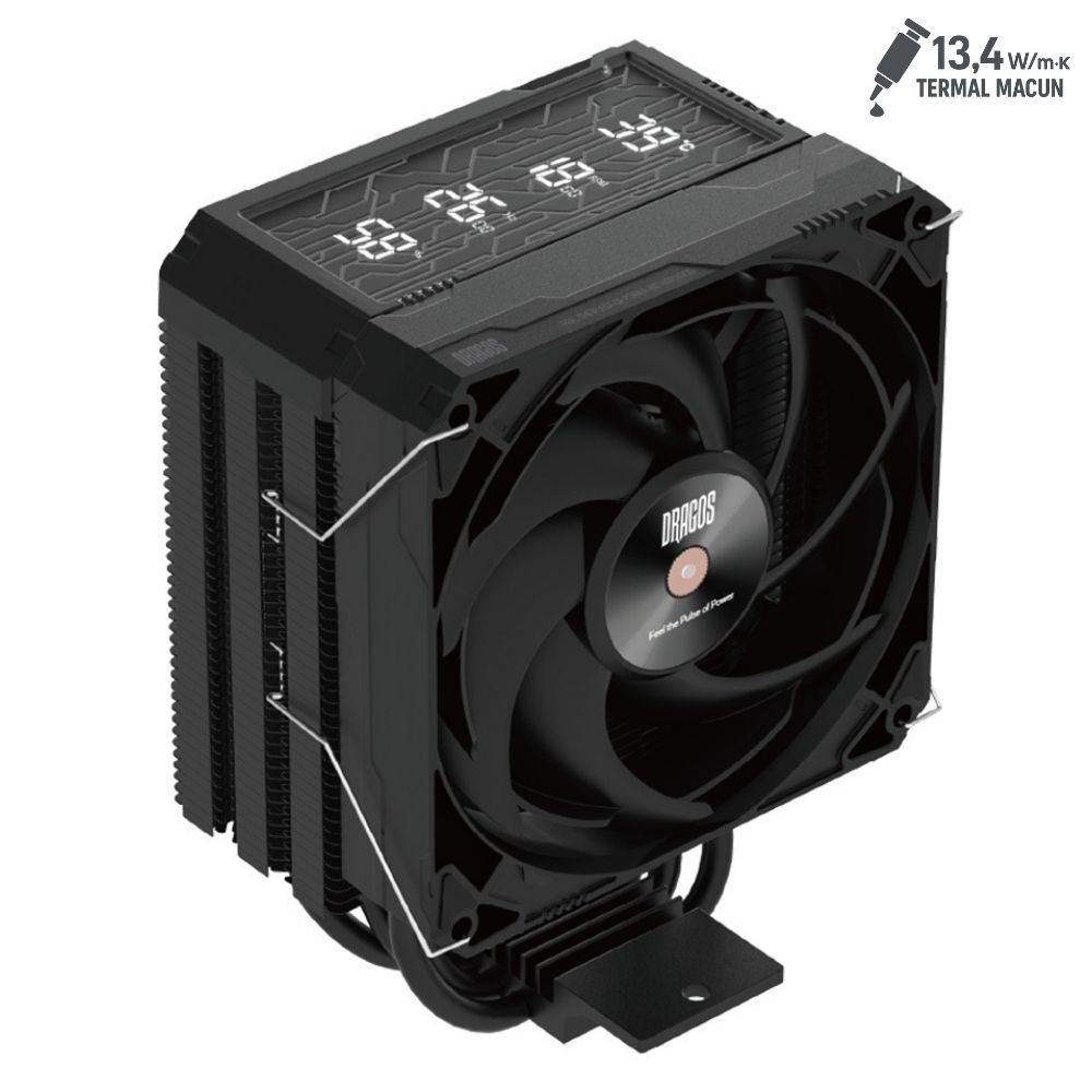Dragos DIGITAL Isı Göstergeli 4 Isı Borulu 3000RPM 220W Intel & AMD Uyumlu Siyah Kule Tipi CPU Soğutucu