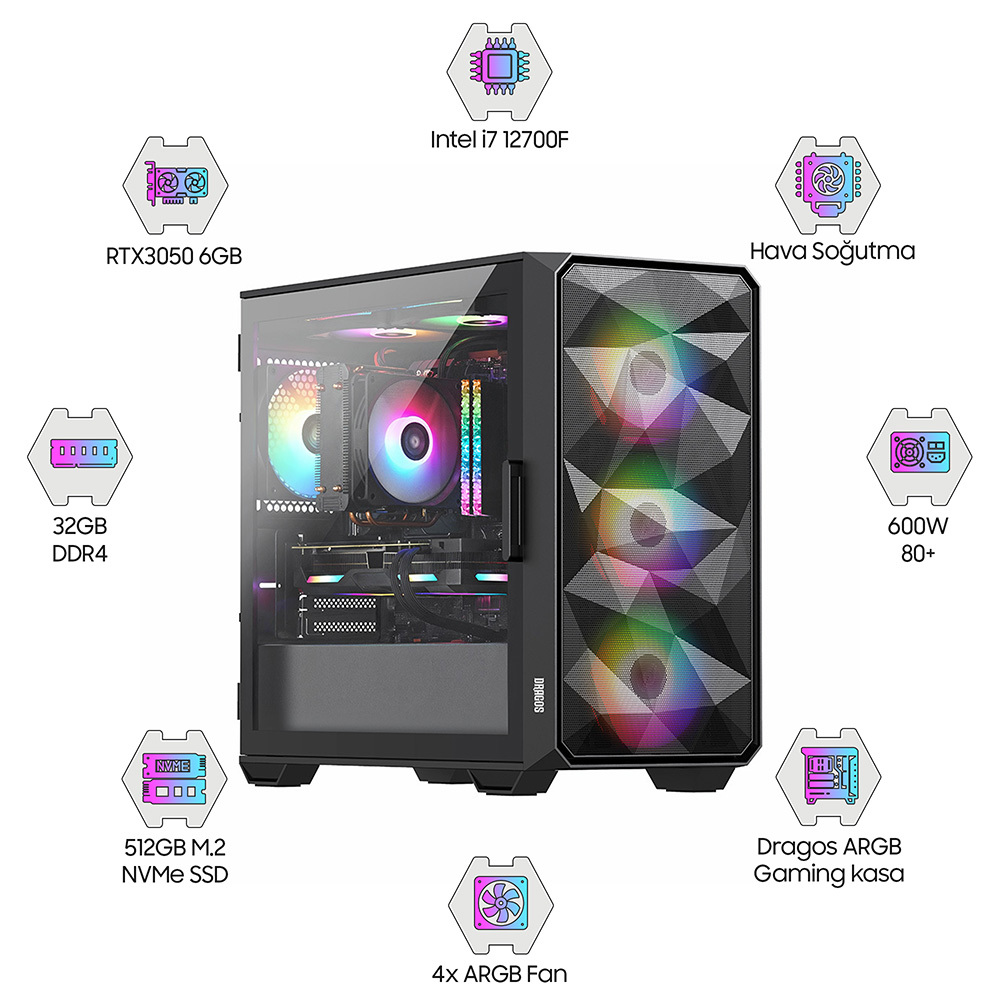 | Sistem Adı | Dragos DRx2366 i7 12700F 32GB Ram 512GB M.2 NVMe SSD RTX3050 Oem Paket |