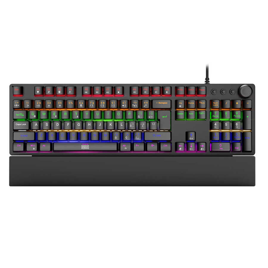 Dragos Natus USB Kablolu Rainbow Makro Gaming Mekanik Klavye Mekanik Bilek Destekli Red Switch Mekanik Rainbow Klavye