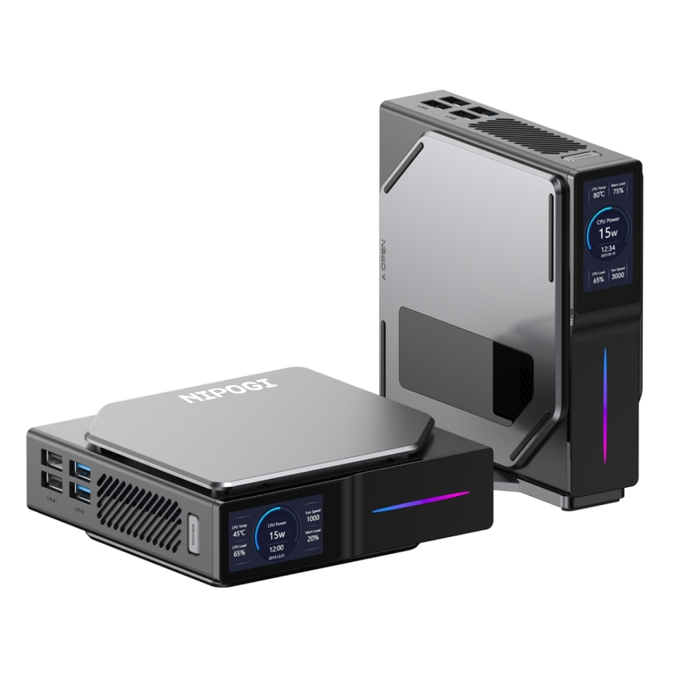 Nipogi S1-x1 N100 12.Nesil 32GB DDR4 512GB NVMe WiFi 6 BT 5.2 LCD Ekranlı WIN11 PRO Mini PC